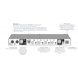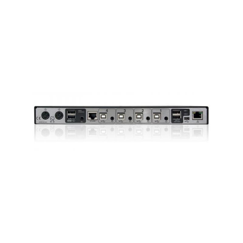 El interruptor ( switch ) de comando y control ADDER CCS-PRO4 permite a los usuarios interactuar con hasta cuatro computadoras usando un solo mouse y teclado. El operador puede simplemente mover el cursor del mouse a través de los bordes de la pantalla para seleccionar instantáneamente la computadora que necesita controlar, proporcionando la experiencia de un solo escritorio, ahorrando tiempo y espacio en el escritorio.